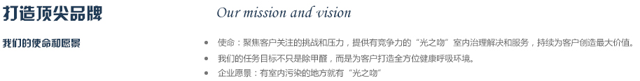 2012年公司斥巨資從德國專業(yè)空氣研發(fā)實(shí)驗(yàn)室引進(jìn)銳鈦型納米二氧化鈦研發(fā)成果,同時(shí)與國內(nèi)知名高校進(jìn)行合作,成立光之吻”品牌,致力于為人類創(chuàng)作純凈,健康的呼吸環(huán)境,成為你身邊的健康衛(wèi)士,實(shí)現(xiàn)365天健康呼吸的夢想,目前是同類產(chǎn)品中最有競爭力的品牌之一。